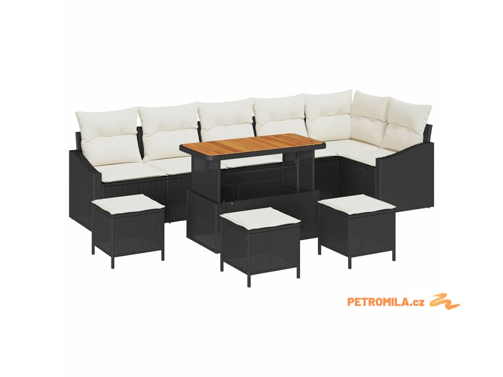 Sada zahradních pohovek s polštářem 10 pcs Černá a krémová