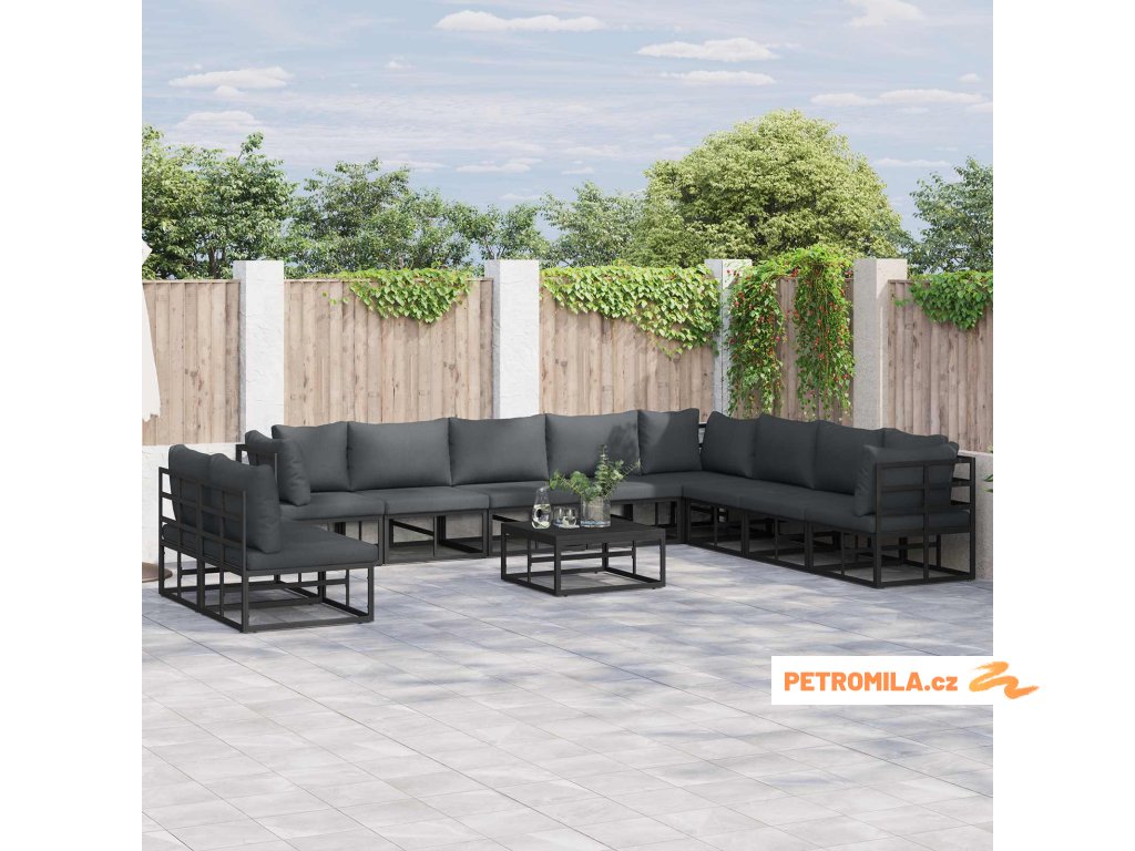 Sada zahradních pohovek s polštářem 10 pcs Černá Hliník