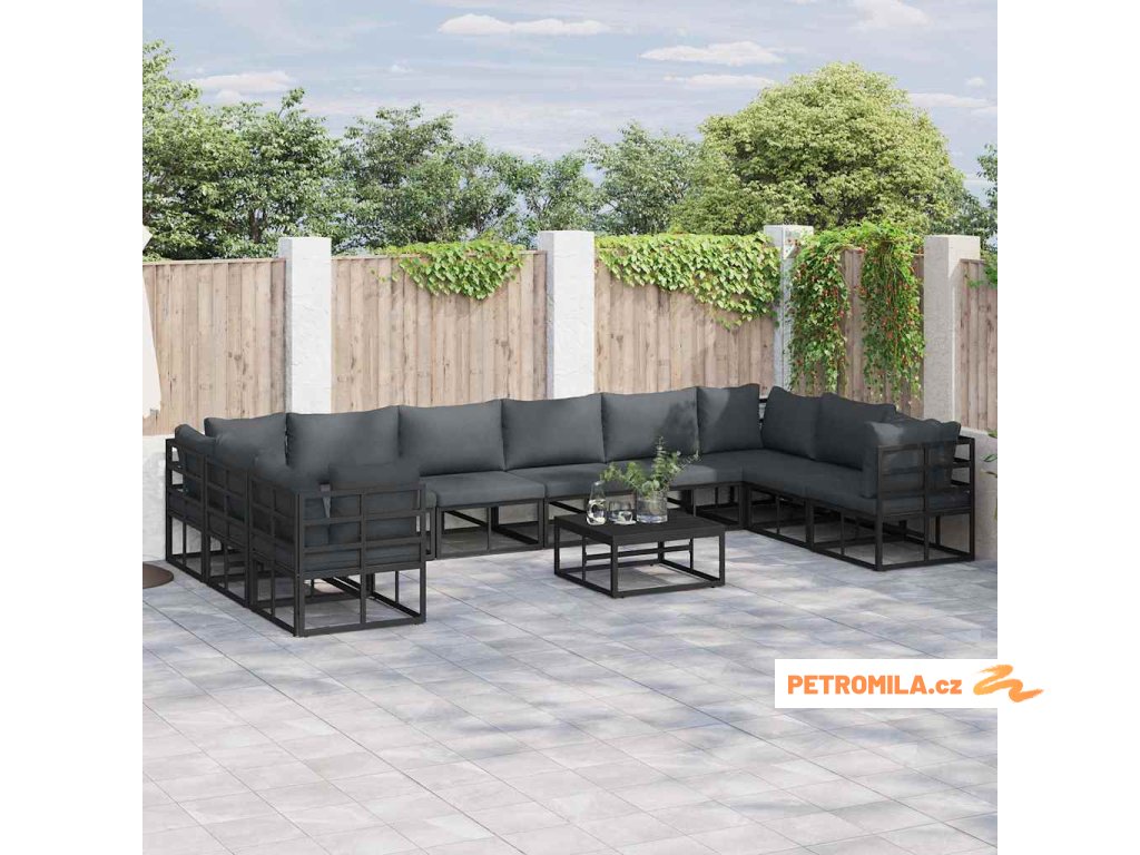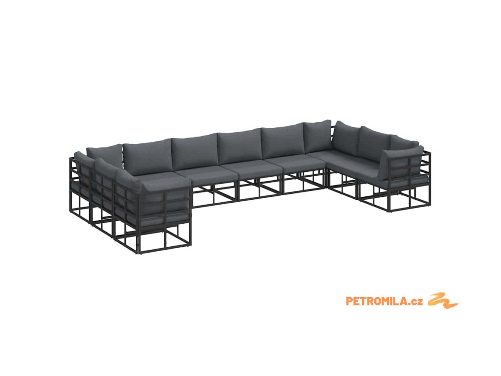 Sada zahradních pohovek s polštářem 10 pcs Černá Hliník