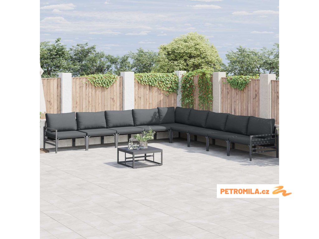 Sada zahradních pohovek s polštářem 10 pcs Černá Ocel
