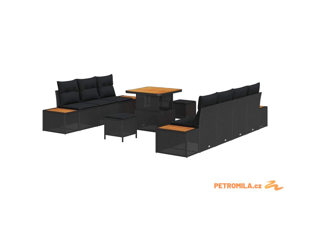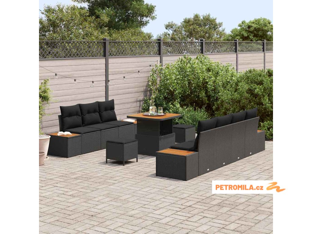 Sada zahradních pohovek s polštářem 10 pcs Černá Poly ratan