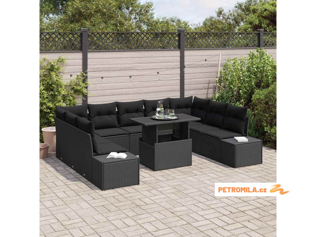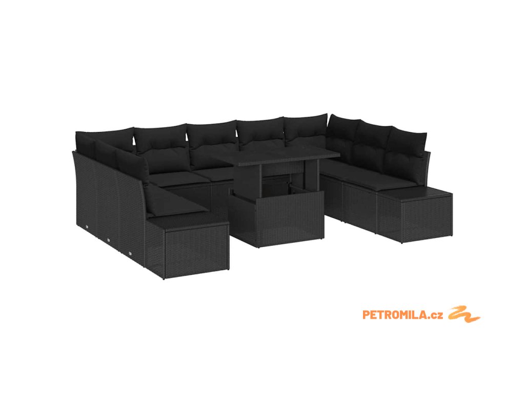 Sada zahradních pohovek s polštářem 10 pcs Černá polyratan