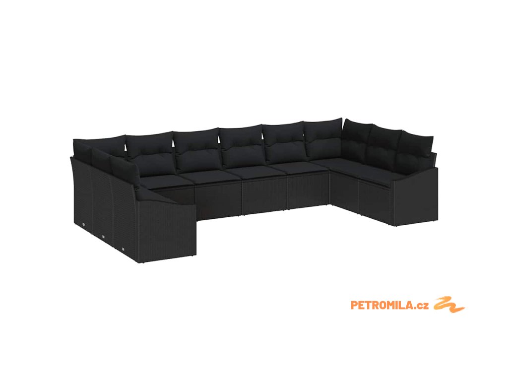 Sada zahradních pohovek s polštářem 10 pcs Černá polyratan