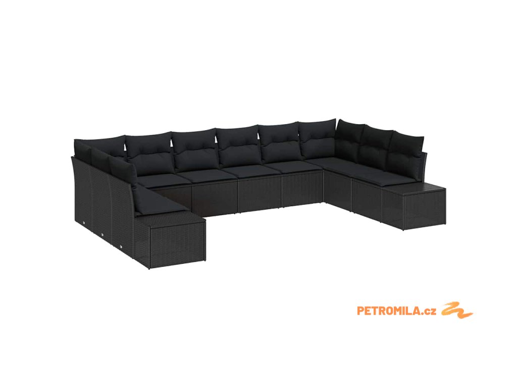 Sada zahradních pohovek s polštářem 10 pcs Černá polyratan