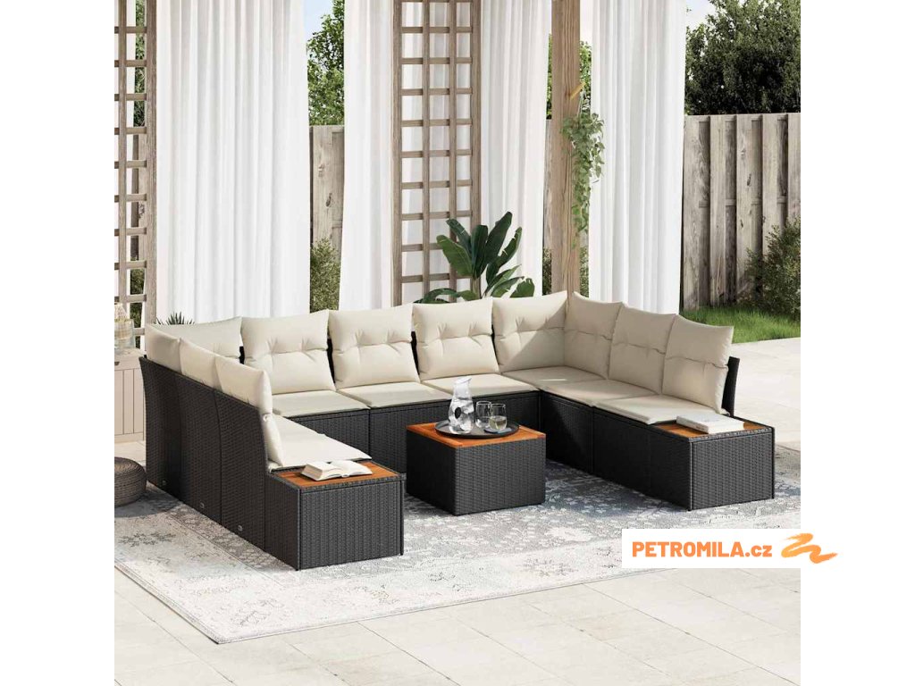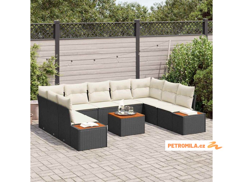 Sada zahradních pohovek s polštářem 10 pcs Černá polyratan
