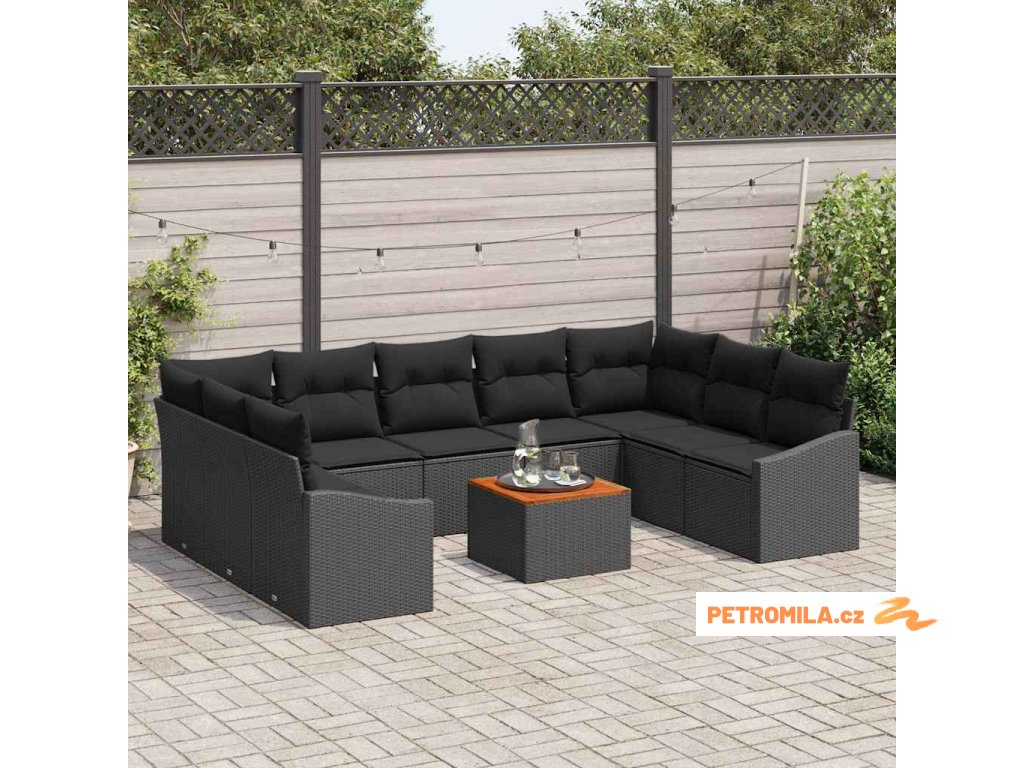 Sada zahradních pohovek s polštářem 10 pcs Černá polyratan