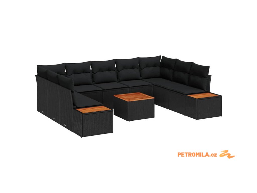 Sada zahradních pohovek s polštářem 10 pcs Černá polyratan