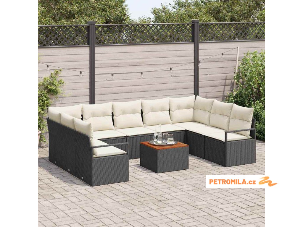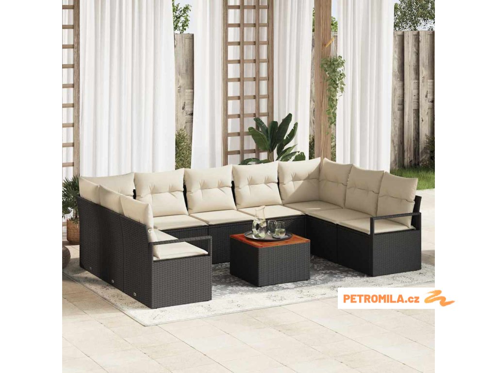 Sada zahradních pohovek s polštářem 10 pcs Černá polyratan