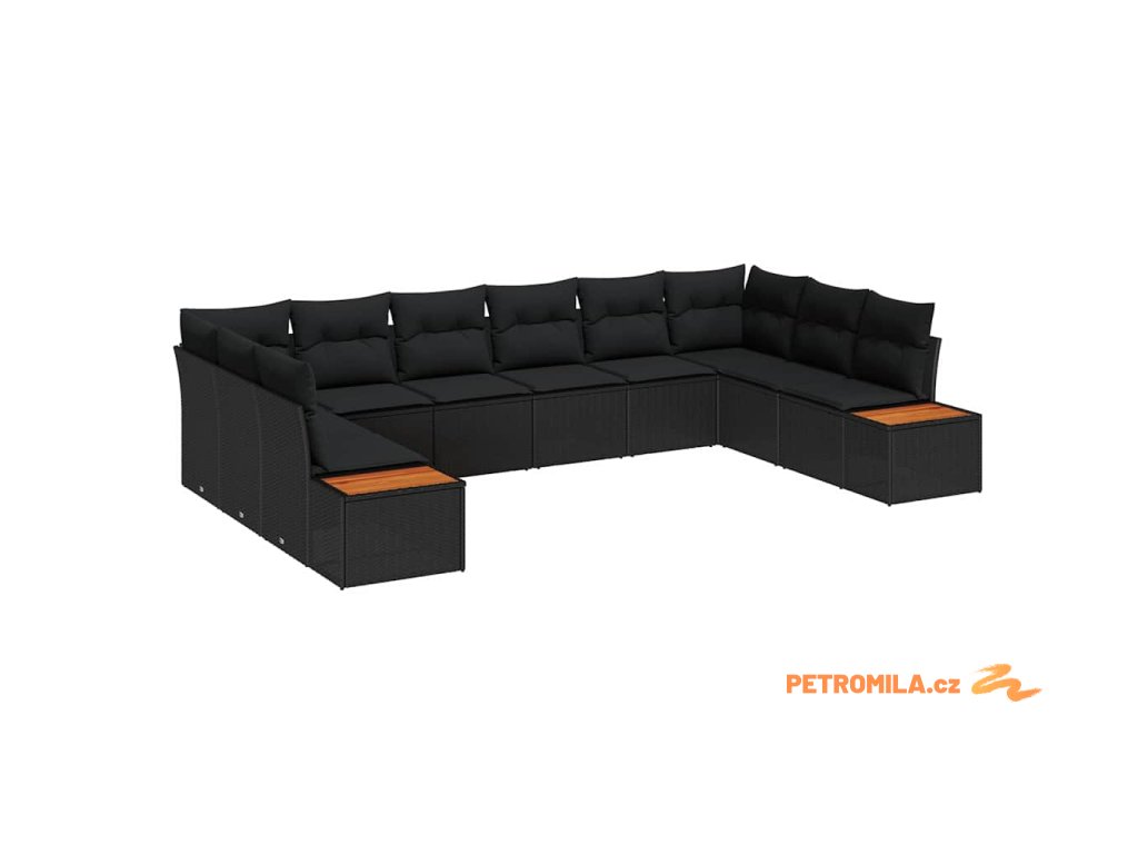 Sada zahradních pohovek s polštářem 10 pcs Černá polyratan