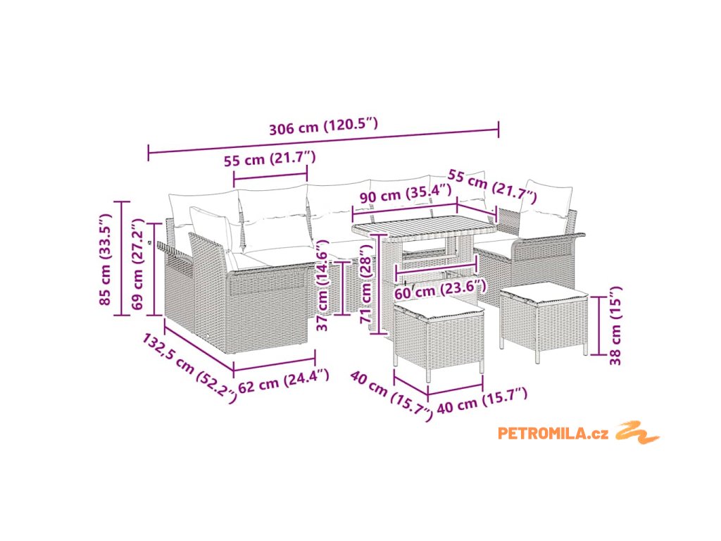 - Jednoduchá údržba Udržujte svou soupravu v perfektním stavu snadnou péčí. Když ji nepoužíváte, zakryjte nábytek, aby byl chráněný před povětrnostními vlivy. Dodržováním jednoduchých pokynů zajistíte, že souprava zůstane krásná a funkční po dlouhou dobu.