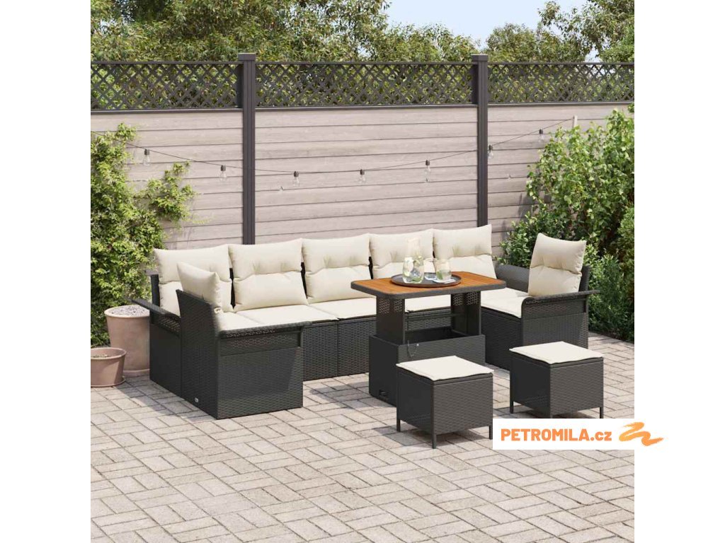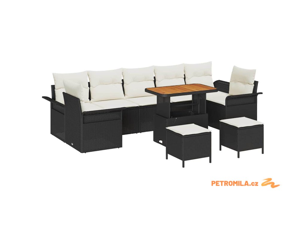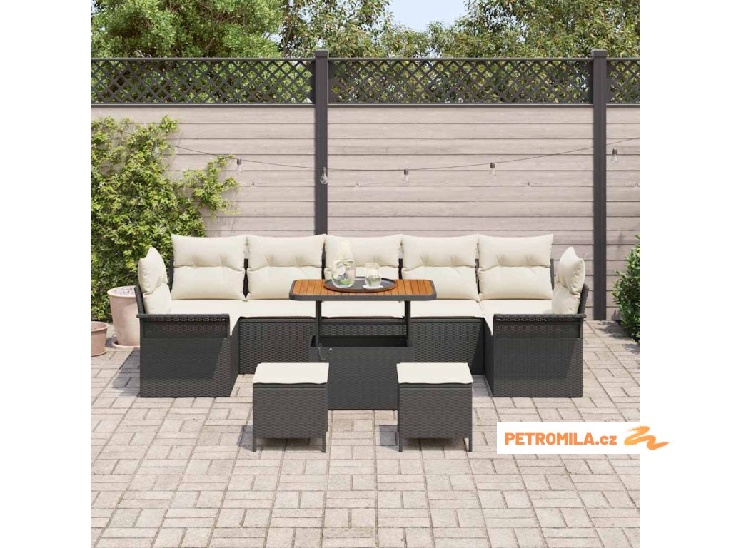 Sada zahradních pohovek s polštářem 10 pcs Černá polyratan