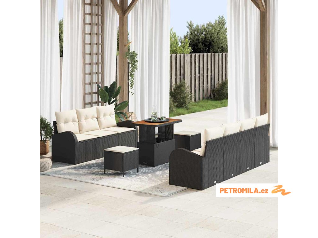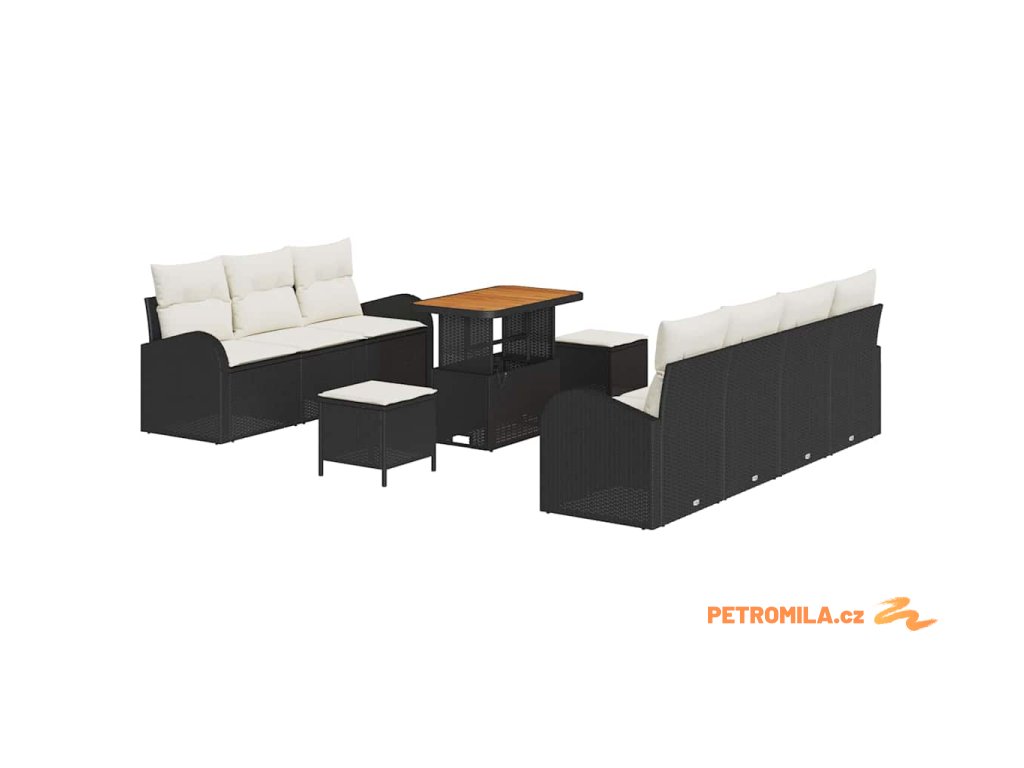 Sada zahradních pohovek s polštářem 10 pcs Černá polyratan