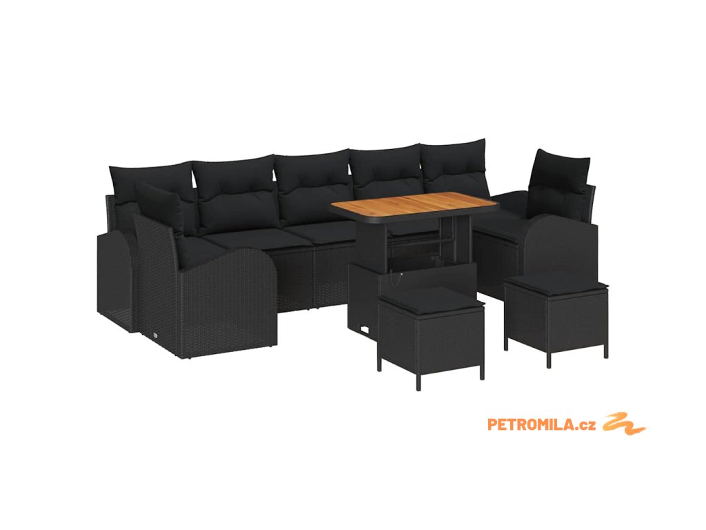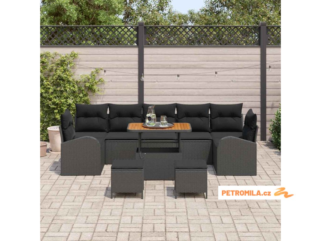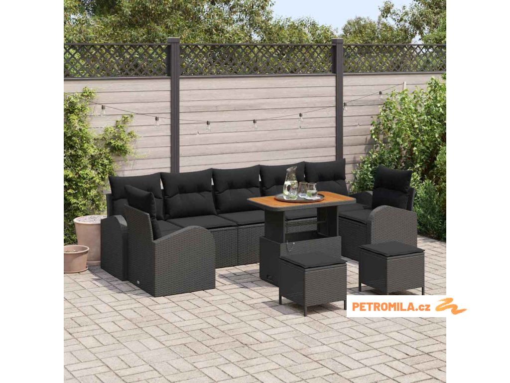 Sada zahradních pohovek s polštářem 10 pcs Černá polyratan