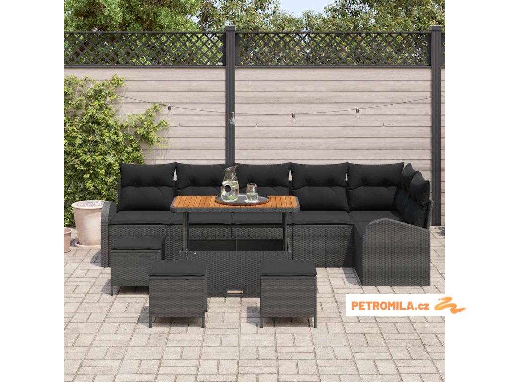 Sada zahradních pohovek s polštářem 10 pcs Černá polyratan