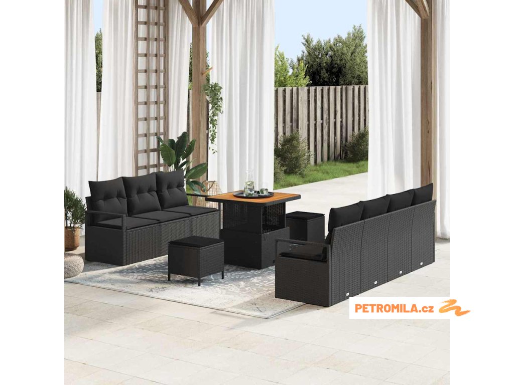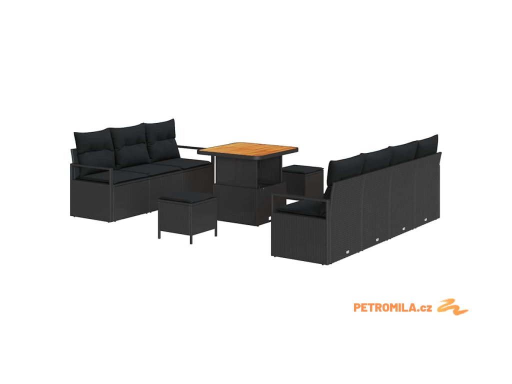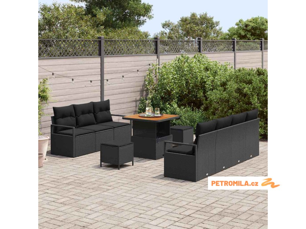 Sada zahradních pohovek s polštářem 10 pcs Černá polyratan