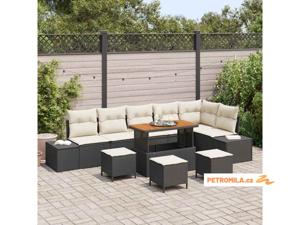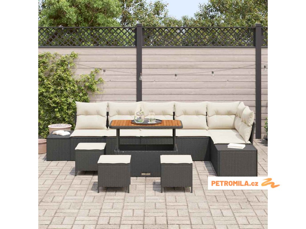 Sada zahradních pohovek s polštářem 10 pcs Černá polyratan