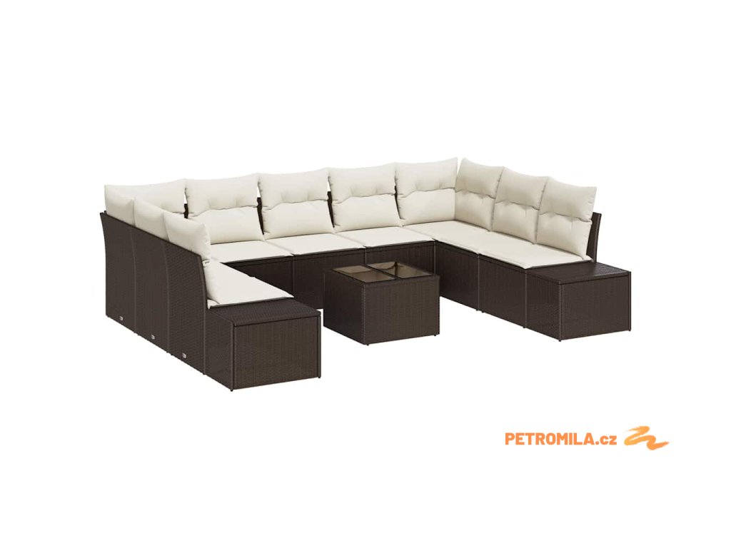 Sada zahradních pohovek s polštářem 10 pcs Hnědá polyratan