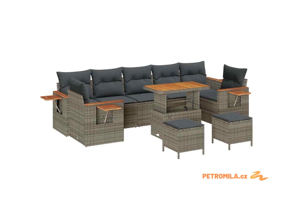 Sada zahradních pohovek s polštářem 10 pcs Šedá