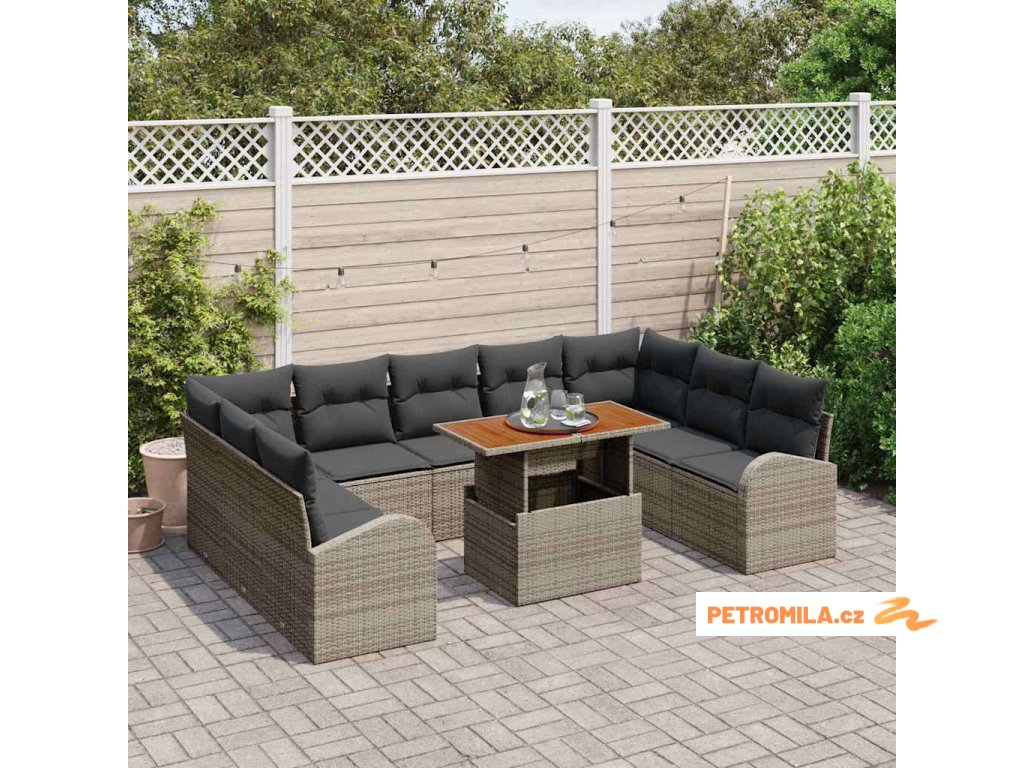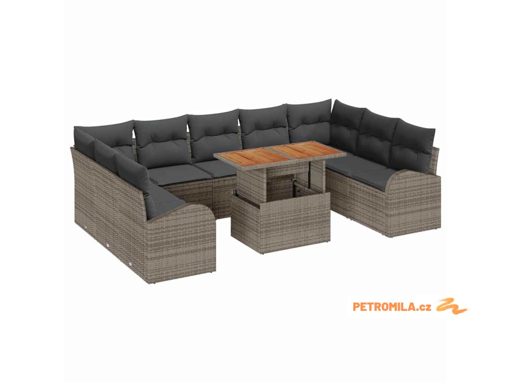 Sada zahradních pohovek s polštářem 10 pcs Šedá
