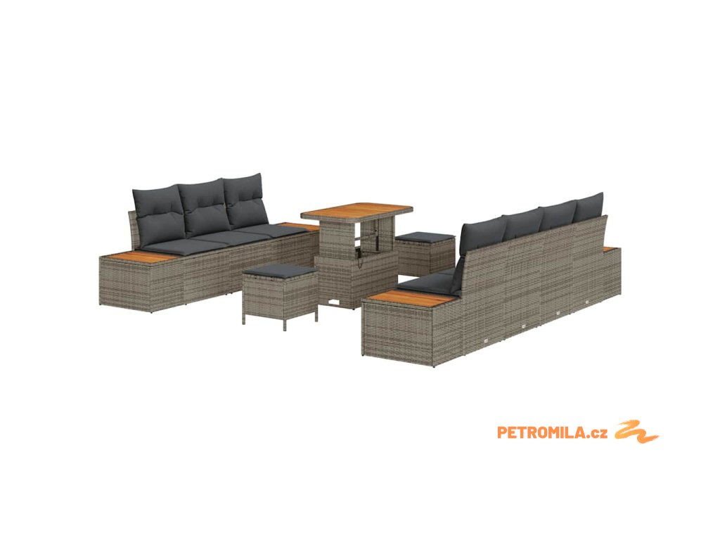 Sada zahradních pohovek s polštářem 10 pcs Šedá Poly ratan