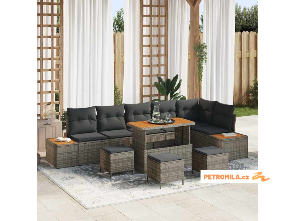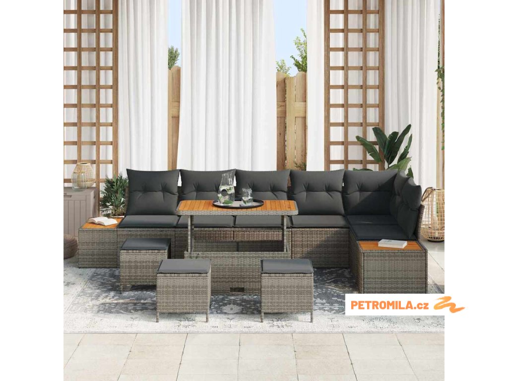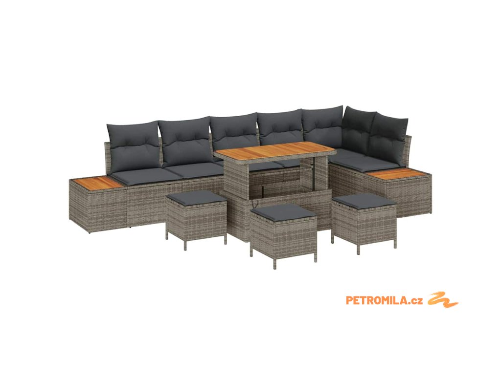 Sada zahradních pohovek s polštářem 10 pcs Šedá Poly ratan