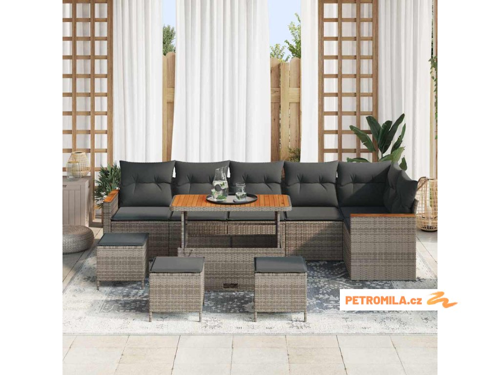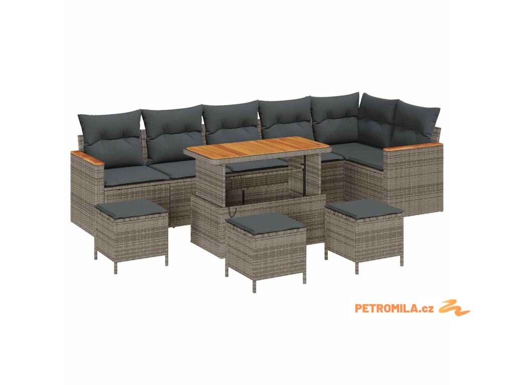 Sada zahradních pohovek s polštářem 10 pcs Šedá Poly ratan