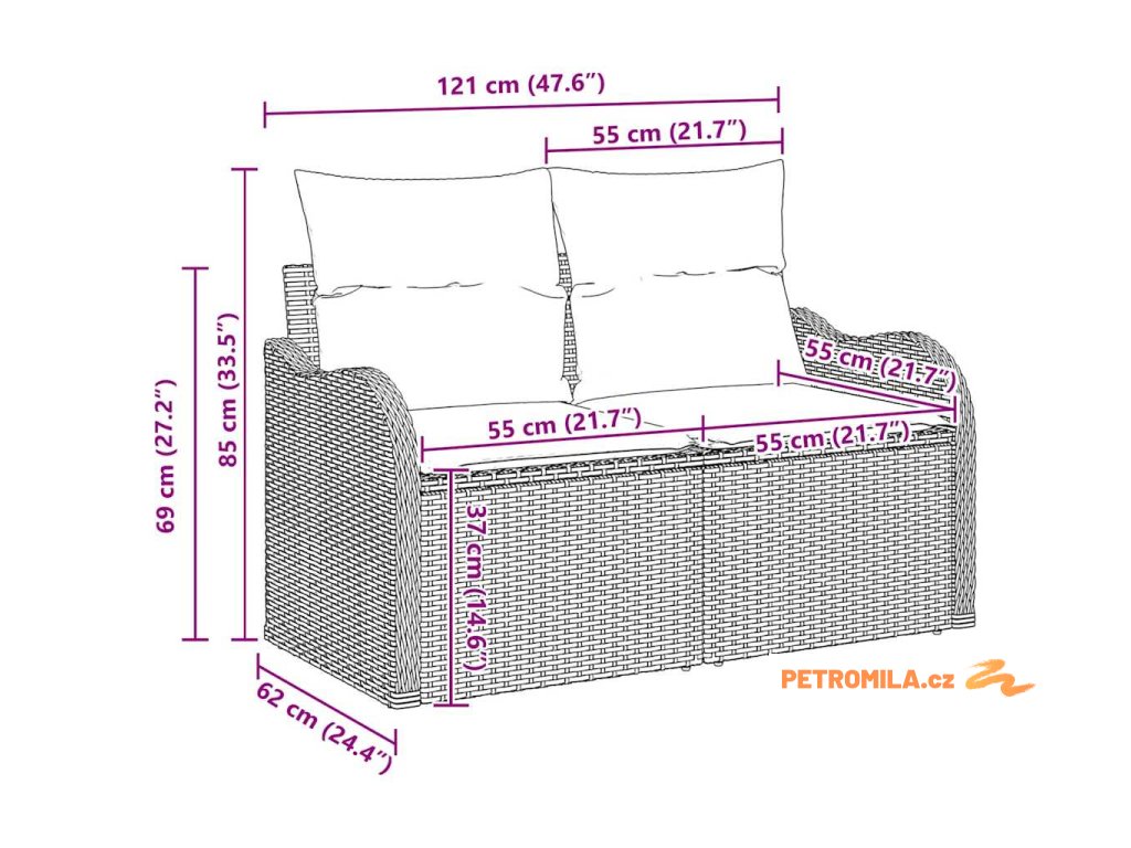 - 3 x Centrální sedák: 55 x 62 x 85 cm (ŠxHxV)