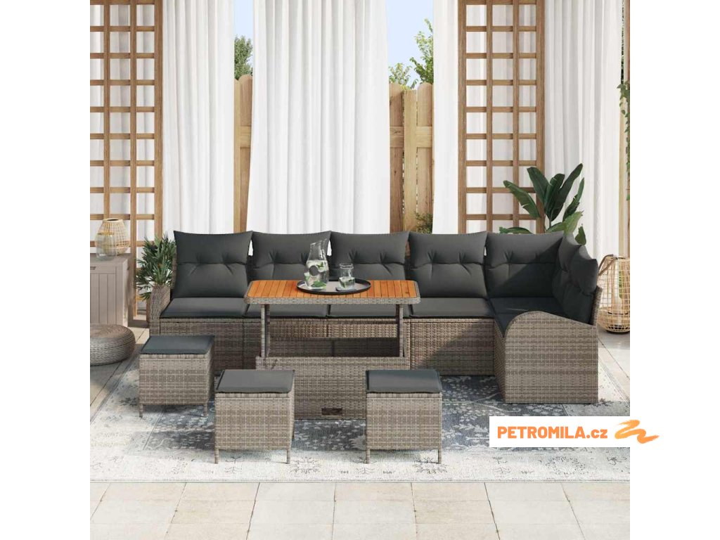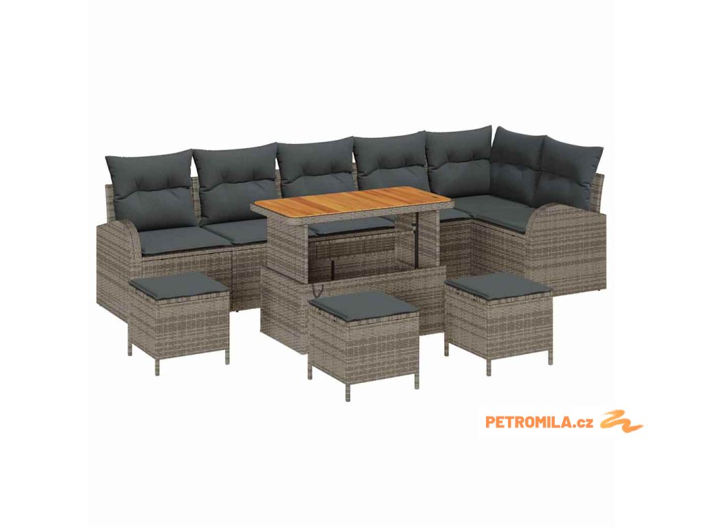 Sada zahradních pohovek s polštářem 10 pcs Šedá polyratan