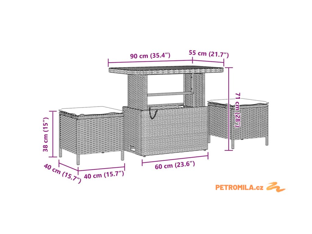 - 1 x Stůl: 90 x 55 x 40/71 cm (DxŠxV)