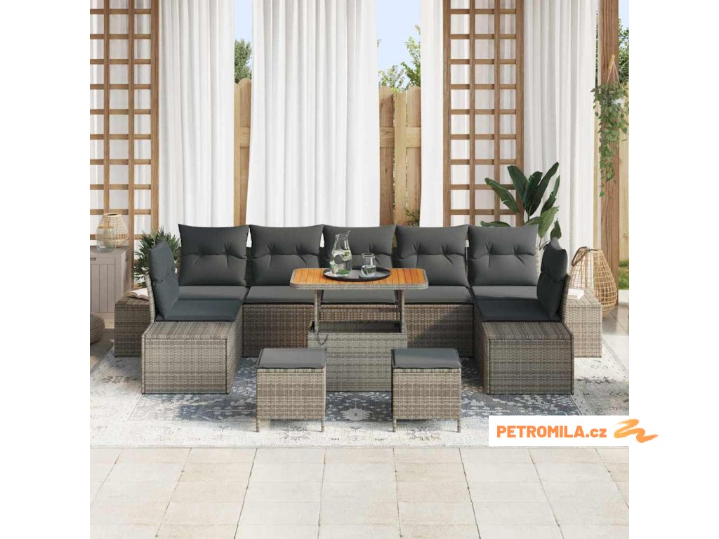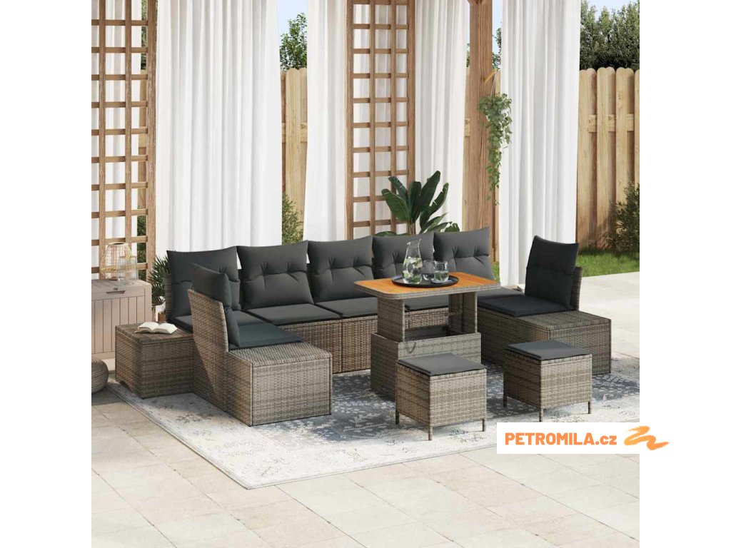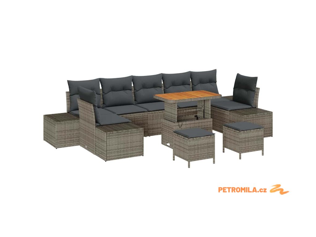 Sada zahradních pohovek s polštářem 10 pcs Šedá polyratan