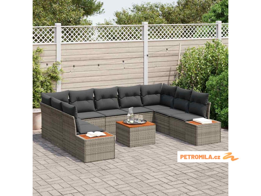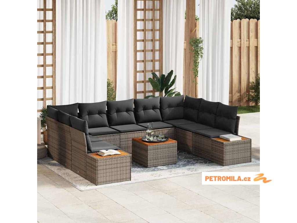 Sada zahradních pohovek s polštářem 10 pcs Šedá polyratan