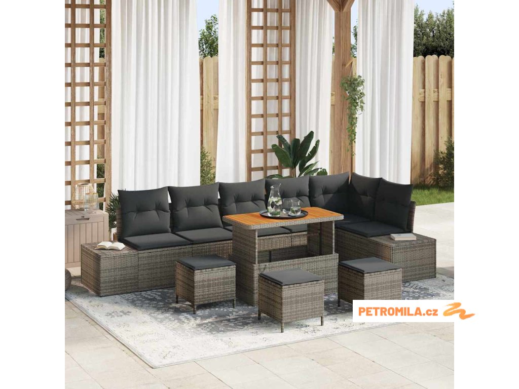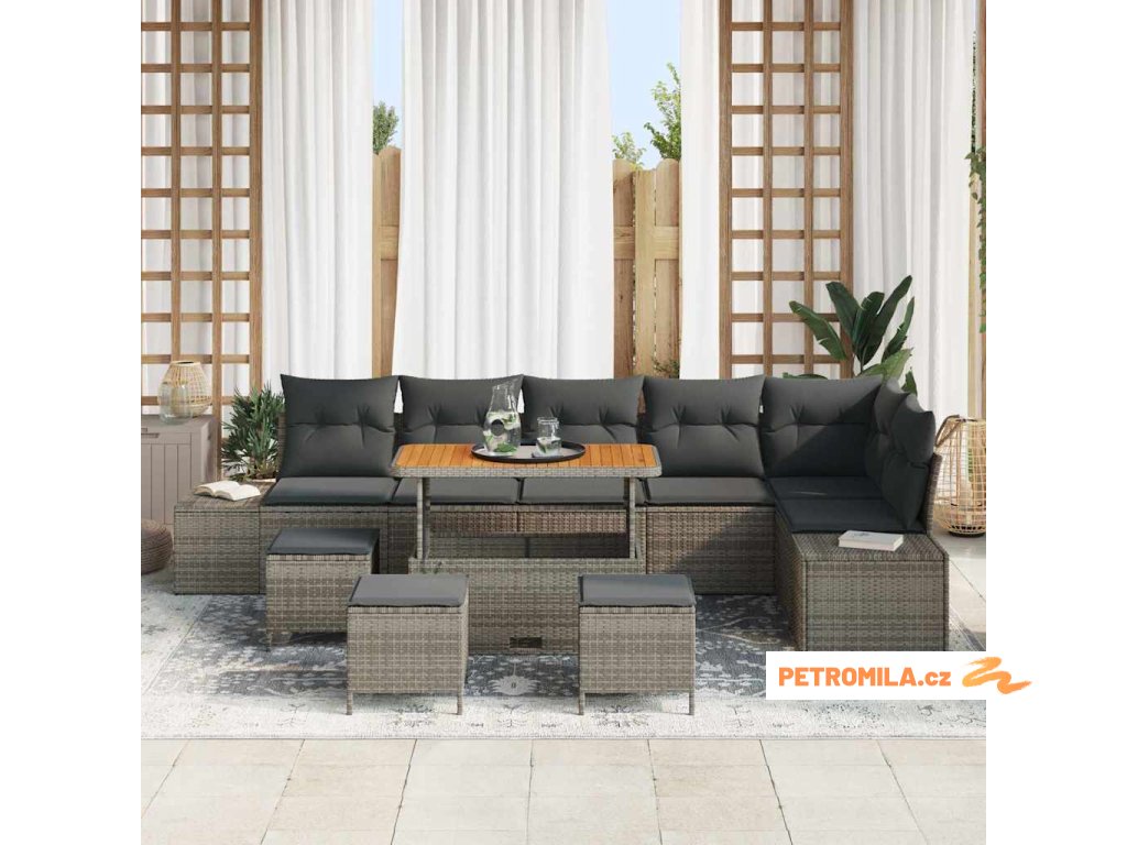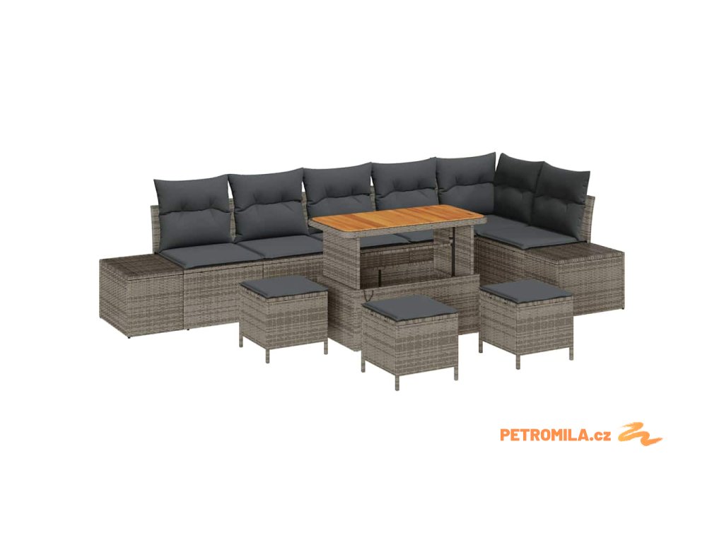Sada zahradních pohovek s polštářem 10 pcs Šedá polyratan