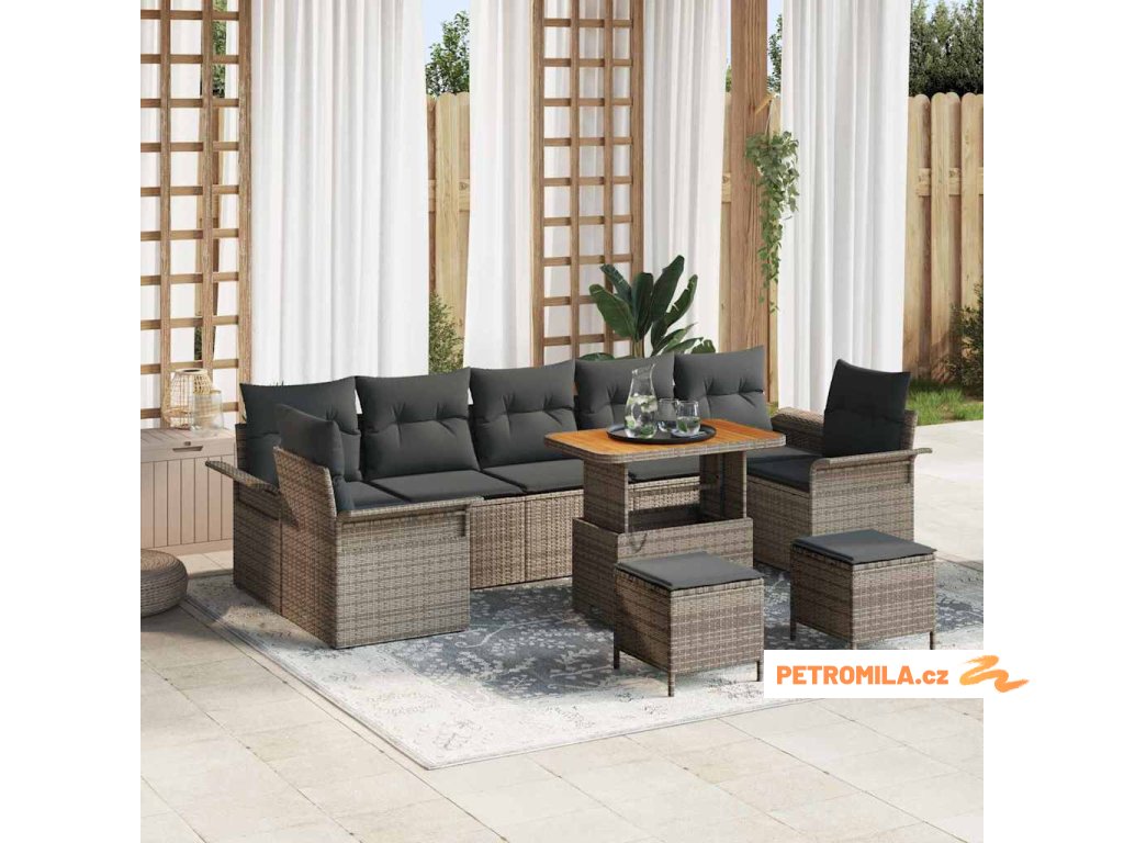 Sada zahradních pohovek s polštářem 10 pcs Šedá polyratan