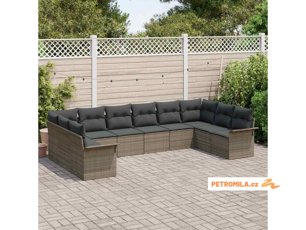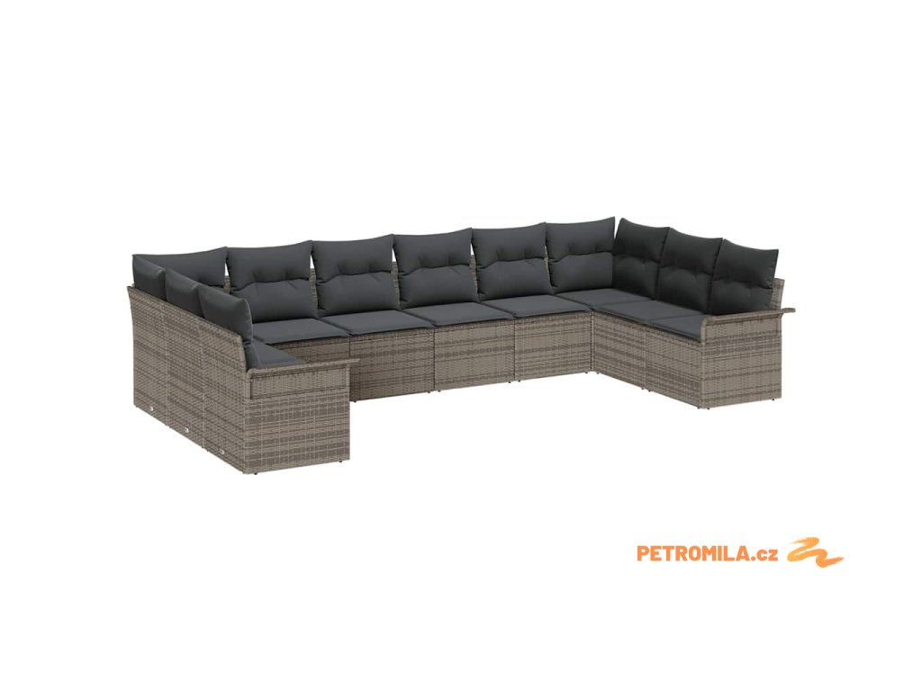Sada zahradních pohovek s polštářem 10 pcs Šedá polyratan
