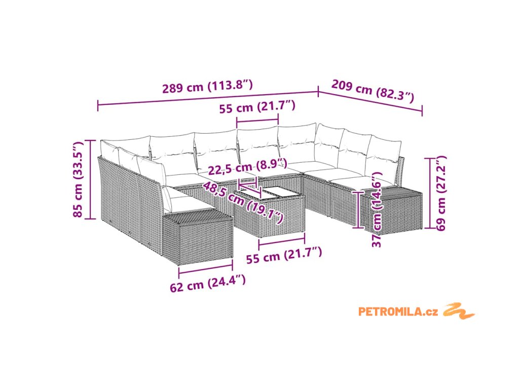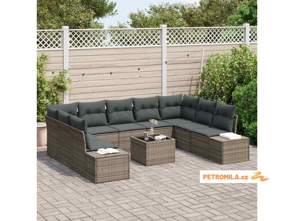 Sada zahradních pohovek s polštářem 10 pcs Šedá polyratan