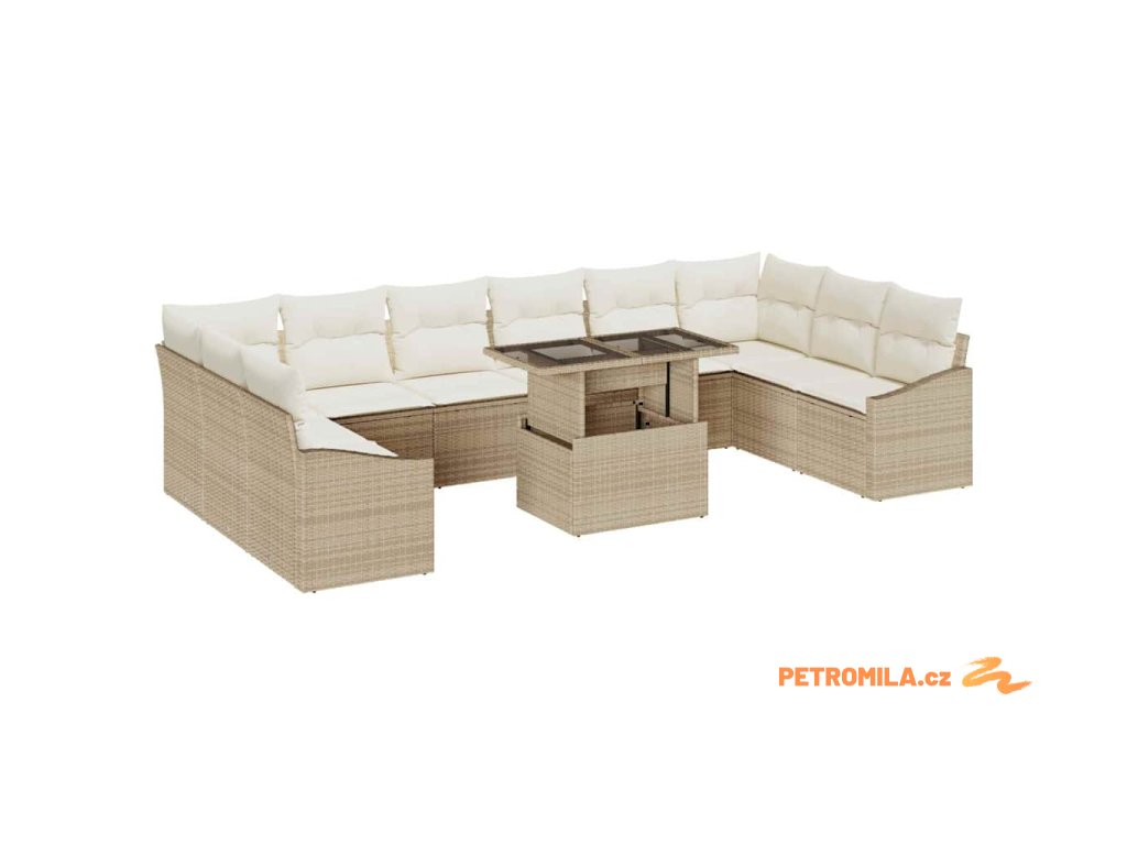 Sada zahradních pohovek s polštářem 11 pcs béžová a krémová
