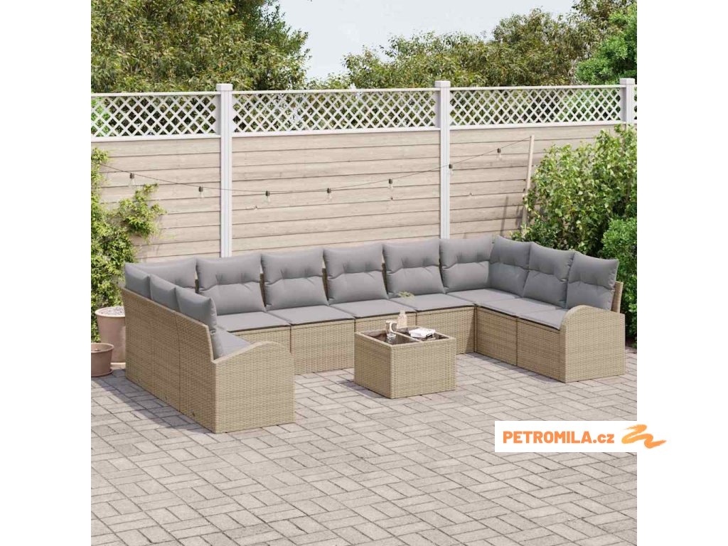 Sada zahradních pohovek s polštářem 11 pcs Béžová a Světle šedá