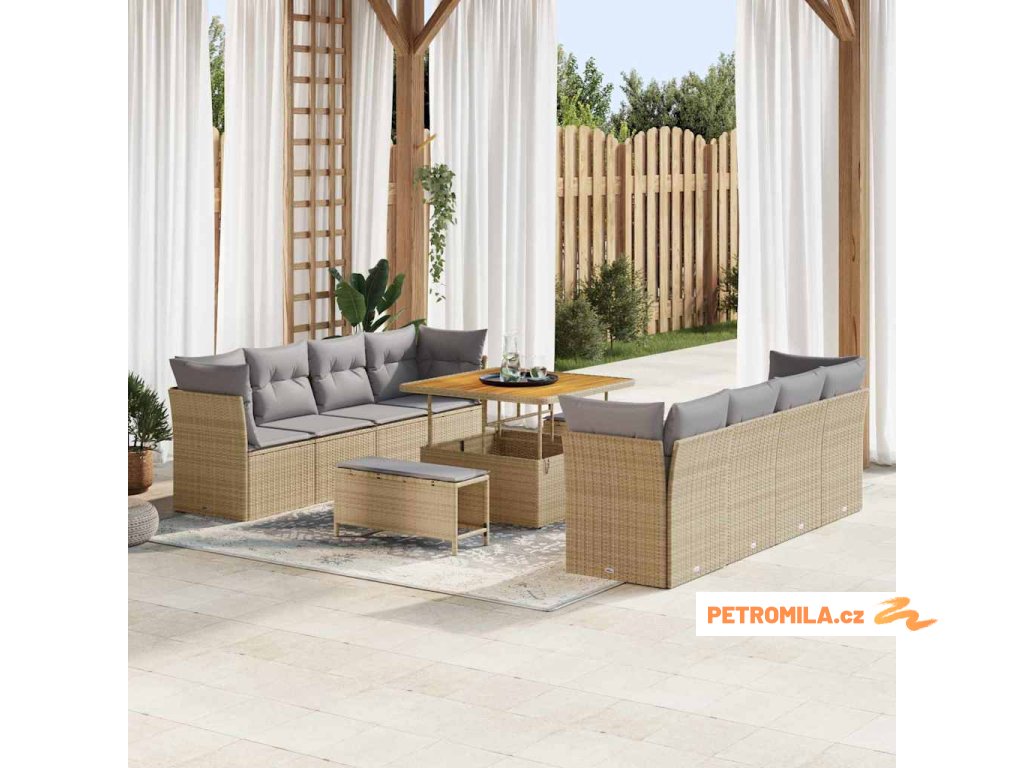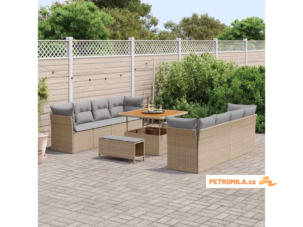 Sada zahradních pohovek s polštářem 11 pcs béžová a světle šedá