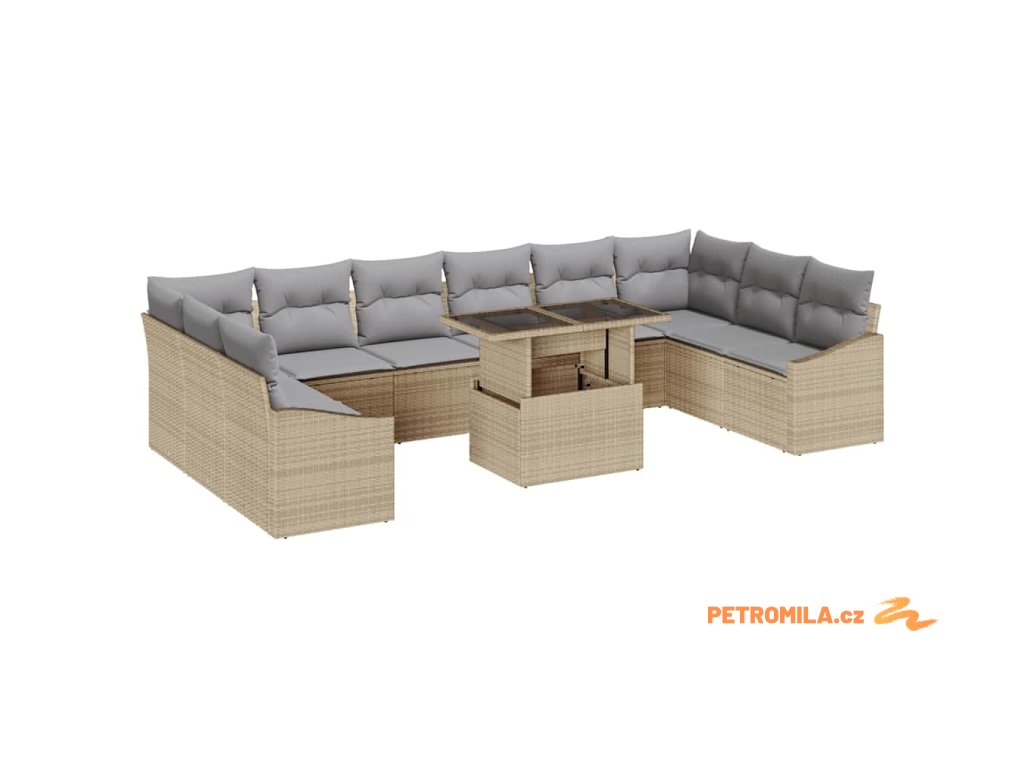 Sada zahradních pohovek s polštářem 11 pcs béžová a světle šedá