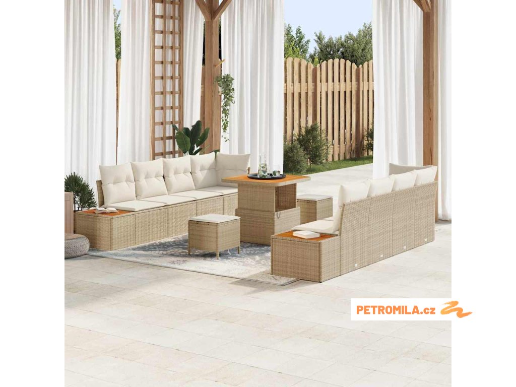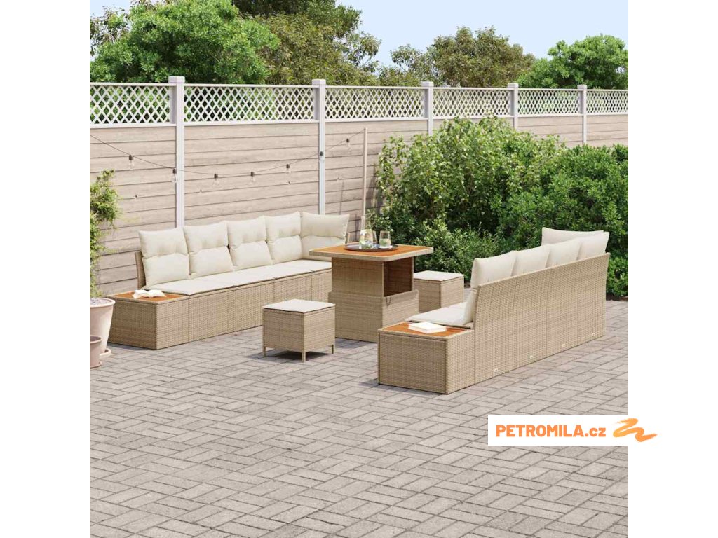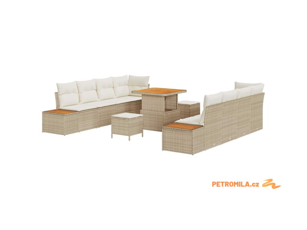 Sada zahradních pohovek s polštářem 11 pcs Béžová Poly ratan