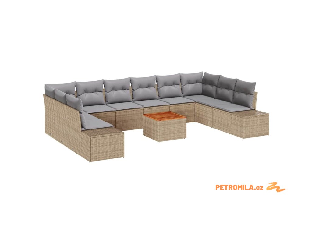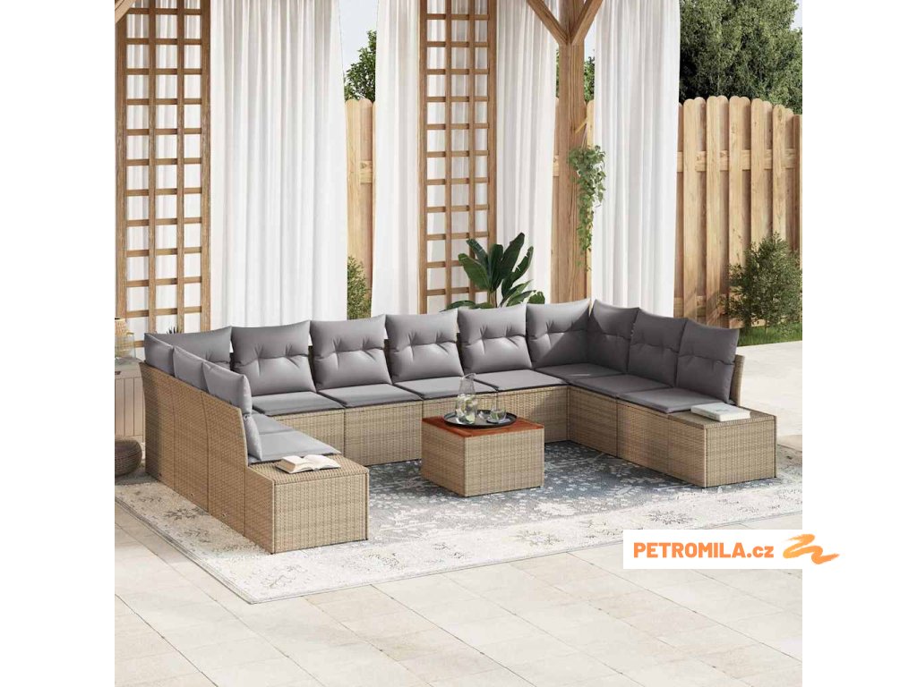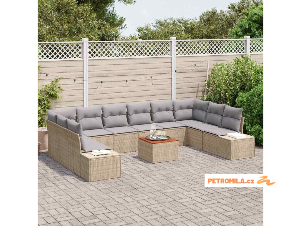 Sada zahradních pohovek s polštářem 11 pcs Béžová polyratan