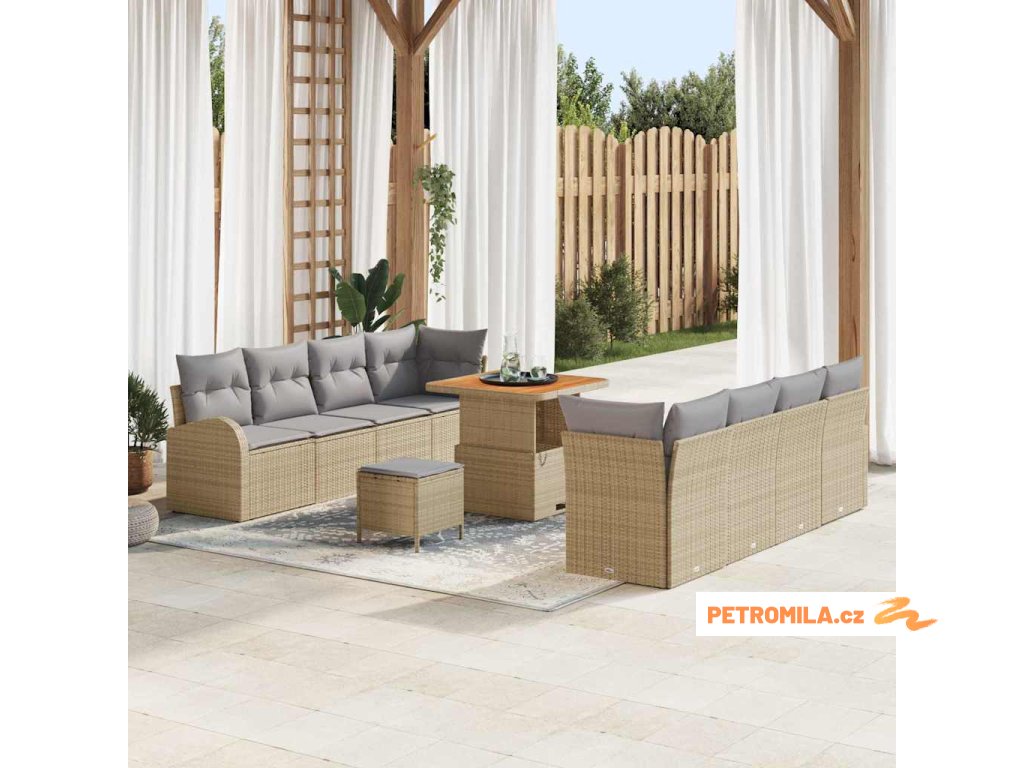 10dílná zahradní sedací souprava s poduškami béžová polyratan