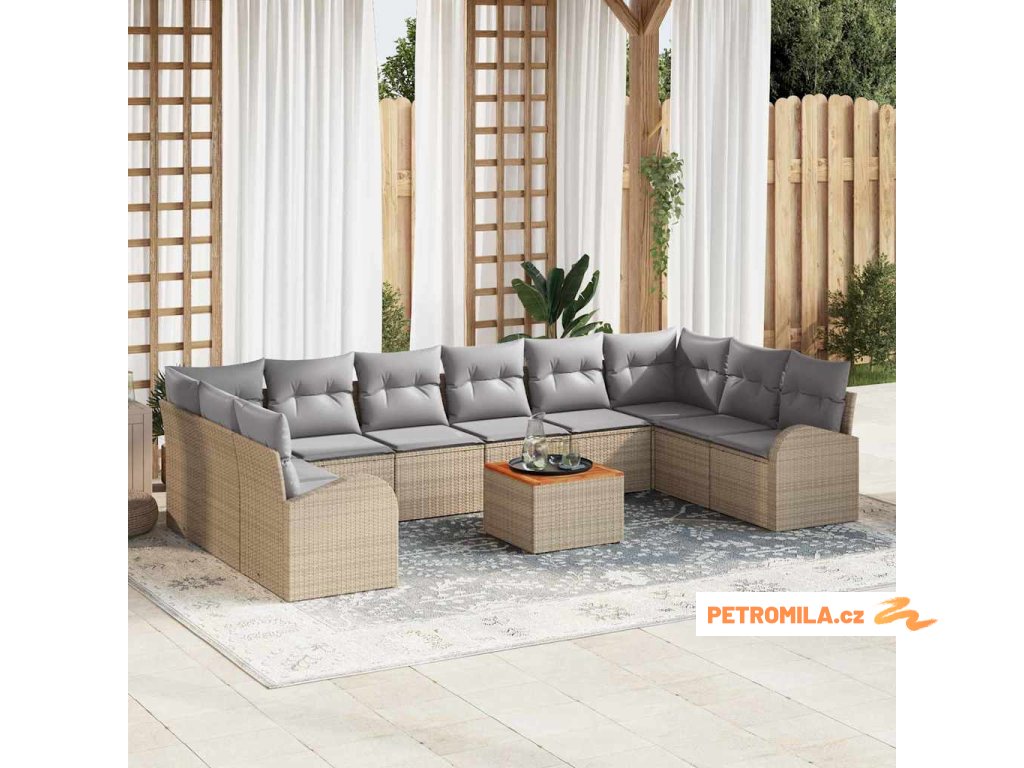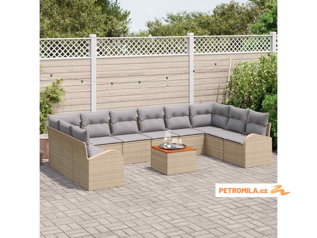 Sada zahradních pohovek s polštářem 11 pcs Béžová polyratan