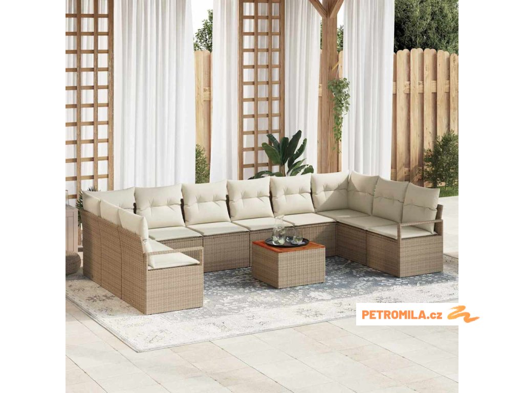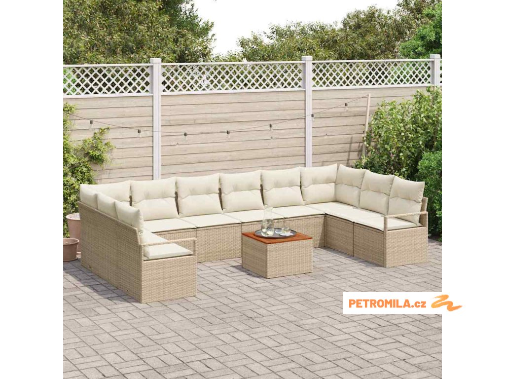 Sada zahradních pohovek s polštářem 11 pcs Béžová polyratan