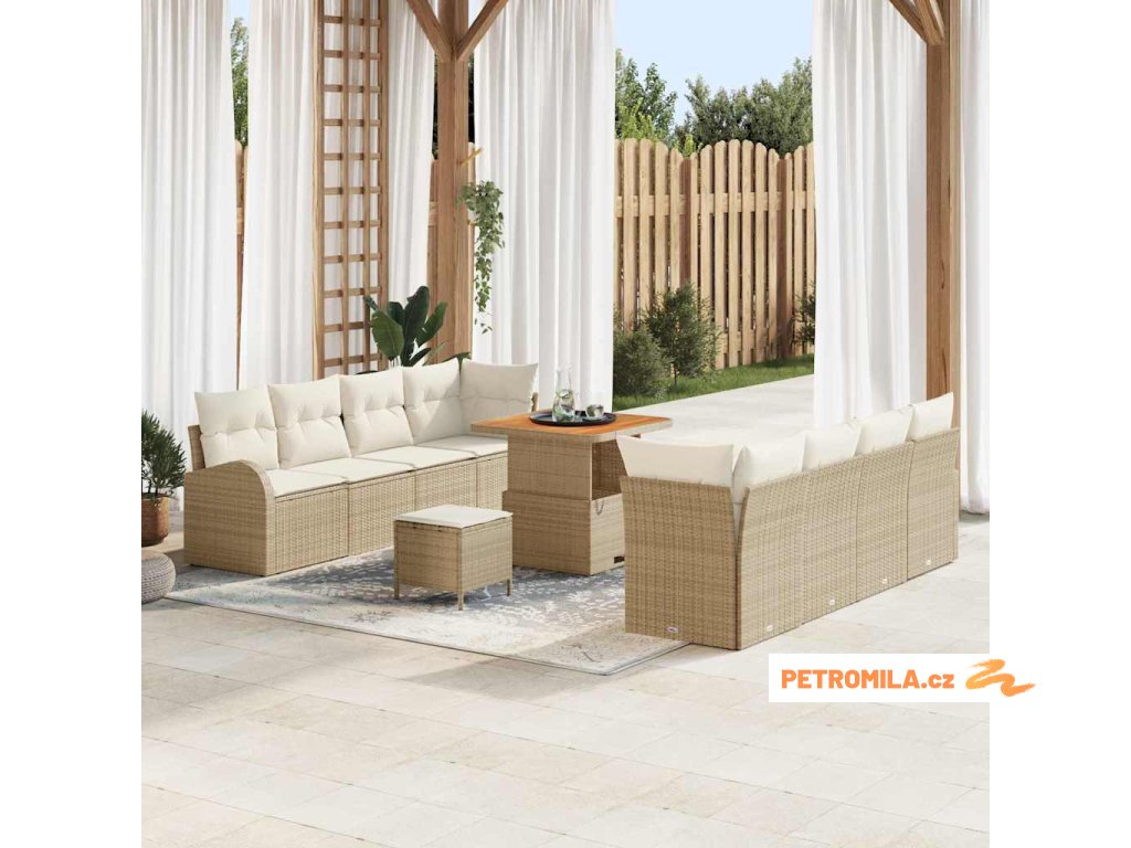 Sada zahradních pohovek s polštářem 11 pcs Béžová polyratan