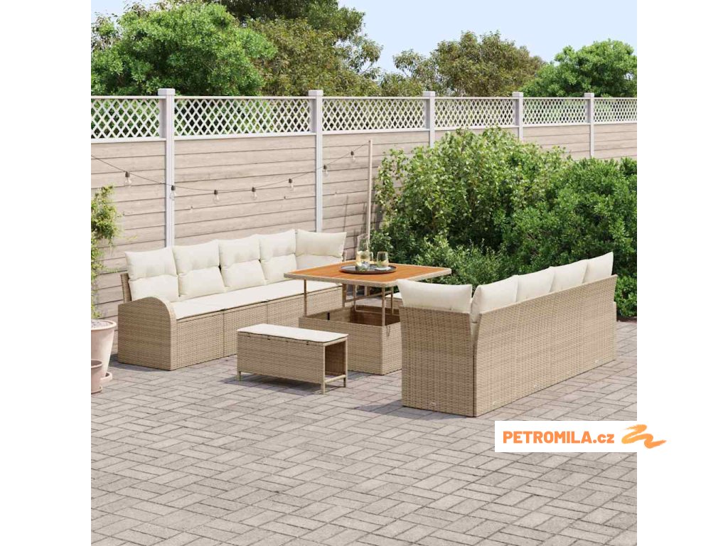 Sada zahradních pohovek s polštářem 11 pcs Béžová polyratan