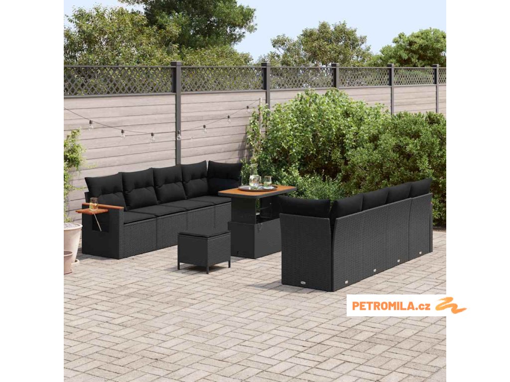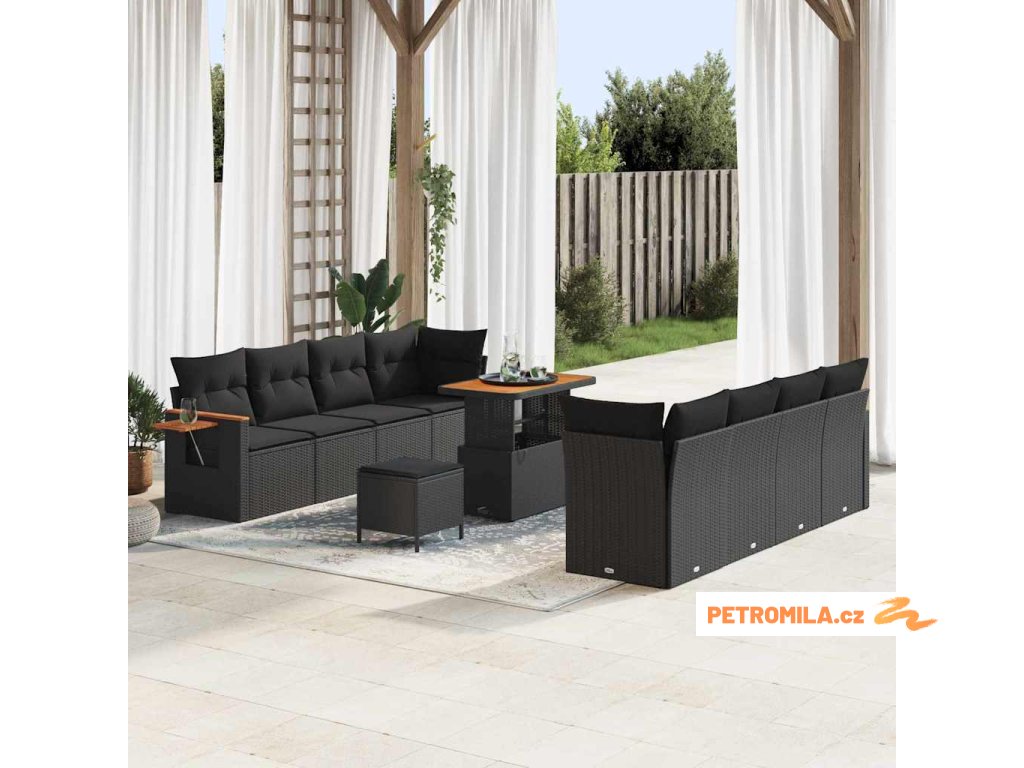 Sada zahradních pohovek s polštářem 11 pcs Černá
