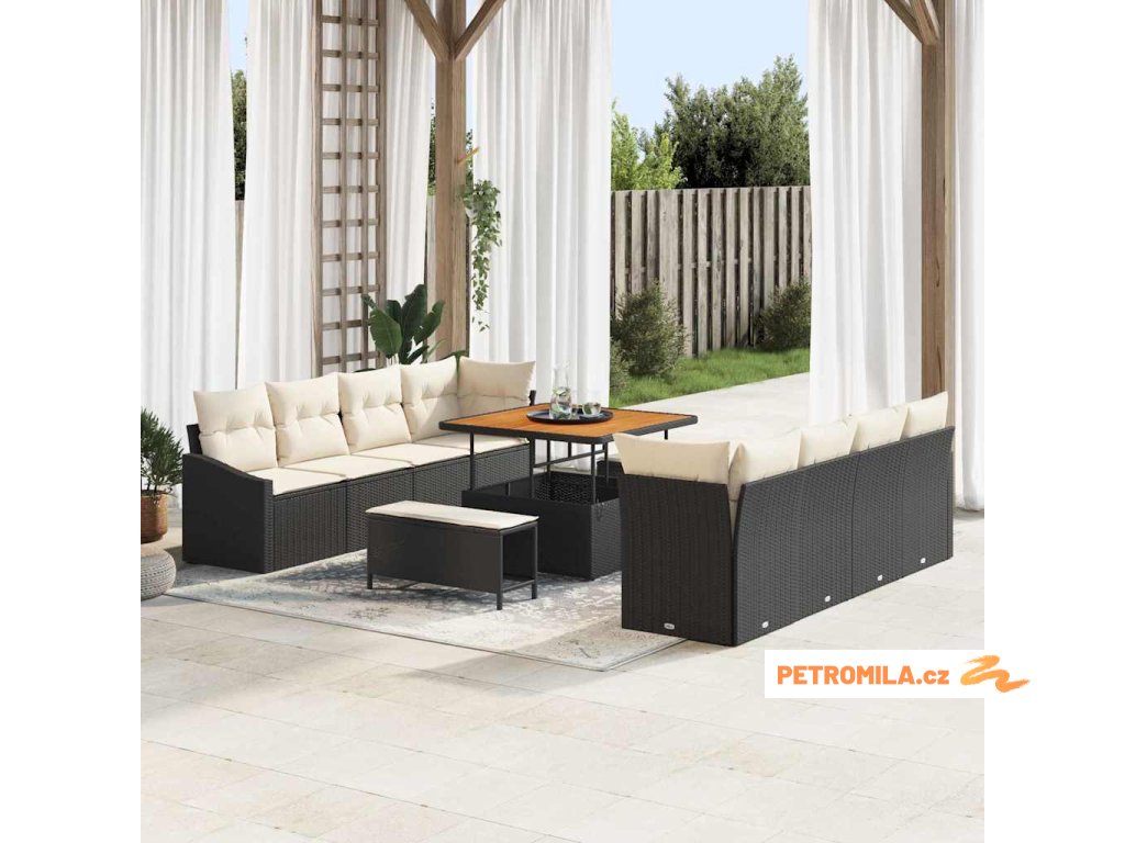 Sada zahradních pohovek s polštářem 11 pcs Černá a krémová