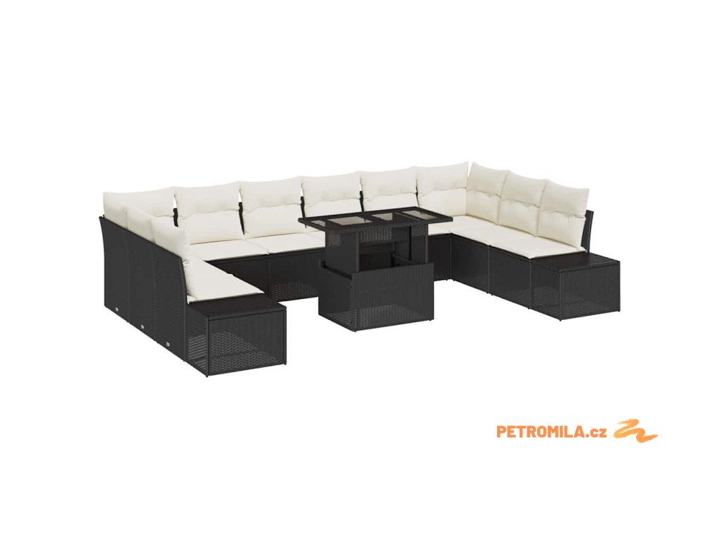 Sada zahradních pohovek s polštářem 11 pcs Černá a krémová