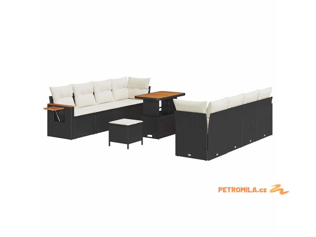 Sada zahradních pohovek s polštářem 11 pcs Černá a krémová